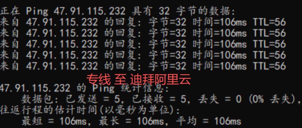 专线:专线链路平均 RTT 约为 106 ms,整体更稳定,相比公网时延降低约 63%。