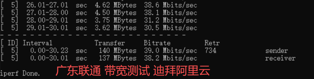 公网:公网环境下,联通实际可用速率稳定在约 39 Mbps;