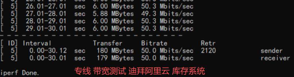 专线:专线链路可稳定跑满至 50 Mbps,带宽利用率接近 100%。