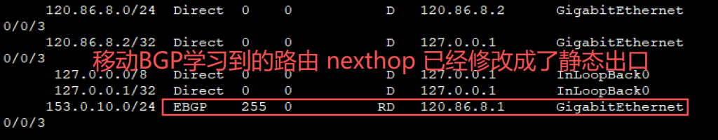 此配置是将从移动Gi 0/0/2学习来的路由,下一跳强制指定到移动静态路由出口上: