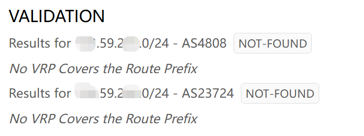 RPKI 校验问题:静态 BGP 多数为 Not Found,可在 RIR 平台配置多个起源 AS 的 ROA。