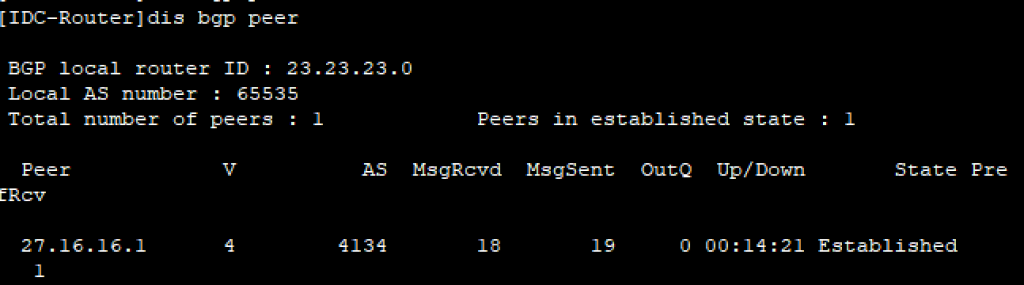 peer 27.16.16.1 route-policy China-CT-import import7.1.4 BGP状态校验