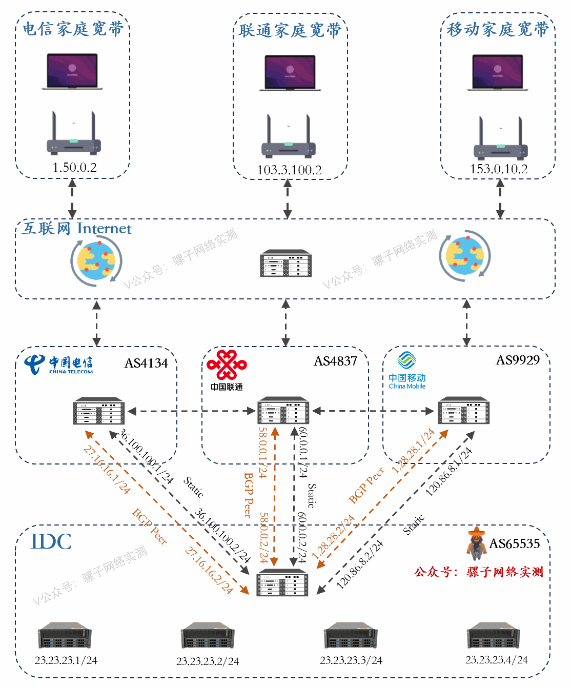 - 三线静态 BGP 是目前 IDC 中成本最低、结构清晰的一种主流方案