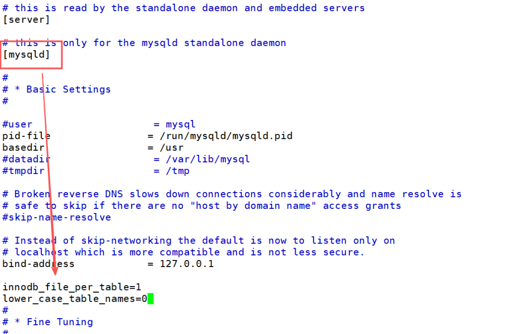 vi /etc/mysql/mariadb.conf.d/50-server.cnf