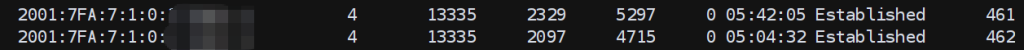 我等了大概6-8小时左右,睡了一觉,BGP状态就正常了,总共ipv4的路由7004条,ipv6的路由大概461条。