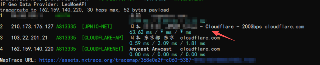 测试环境未暴露实际业务域名,不能使用基于域名的 Trace 接口进行验证,而是通过 BGP 路由表、IX 侧 Looking Glass 以及 Cloudflare 官方测速工具综合确认访问路径进入 Cloudflare 网络。