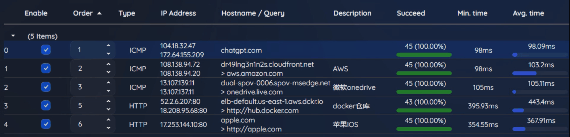 测试的目标应用场景包括:Microsoft、ChatGPT、Apple、Ubuntu、AWS、Docker 等常见企业与开发者常用服务。