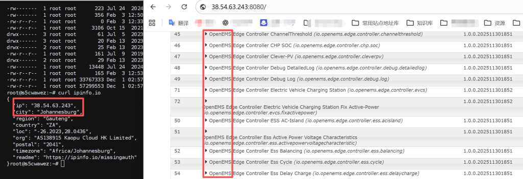 南非侧部署在约翰内斯堡数据中心,通过一台业务虚拟机承载 OpenEMS 服务,网络接入采用独立的南非方向专线。