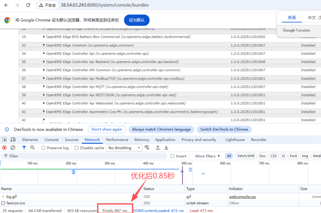 测试总结:网络优化后,南非系统页面网络加载时间由 30–60 秒 缩短至 约 1 秒,响应时间波动明显降低,页面访问的稳定性和可预期性得到提升。