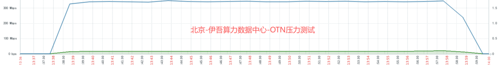 北京 ⇄ 伊吾 OTN 专线:300 Mbps 可持续跑满;测试期间无丢包