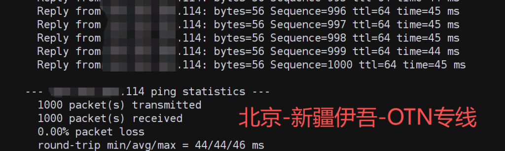 OTN 专线:平均延时 44 ms;丢包率 0