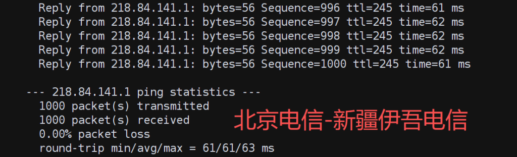 4.1 延时与丢包(1000 包 ICMP)