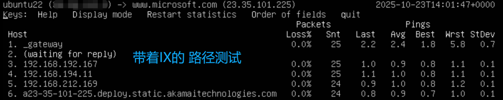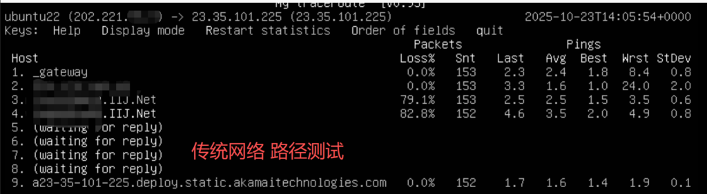 在本次测试环境下,IX 出口到目标网络为 6 跳,传统 IPT 出口为 9 跳,减少了 3 个中间节点。