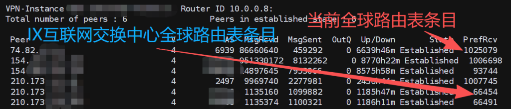 当前全球 BGP Full Table 规模在 100 万条以上,而 IX 内部维护的路由规模约为 6.6 万条。
