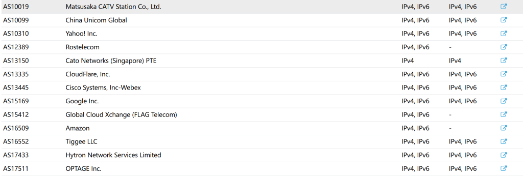 从数量上看,IX 路由表较小,但在企业实际流量构成中,大量访问集中于少数 AS,如 Microsoft、Apple、AWS、Alibaba、Google 以及 Cloudflare、Akamai 等。